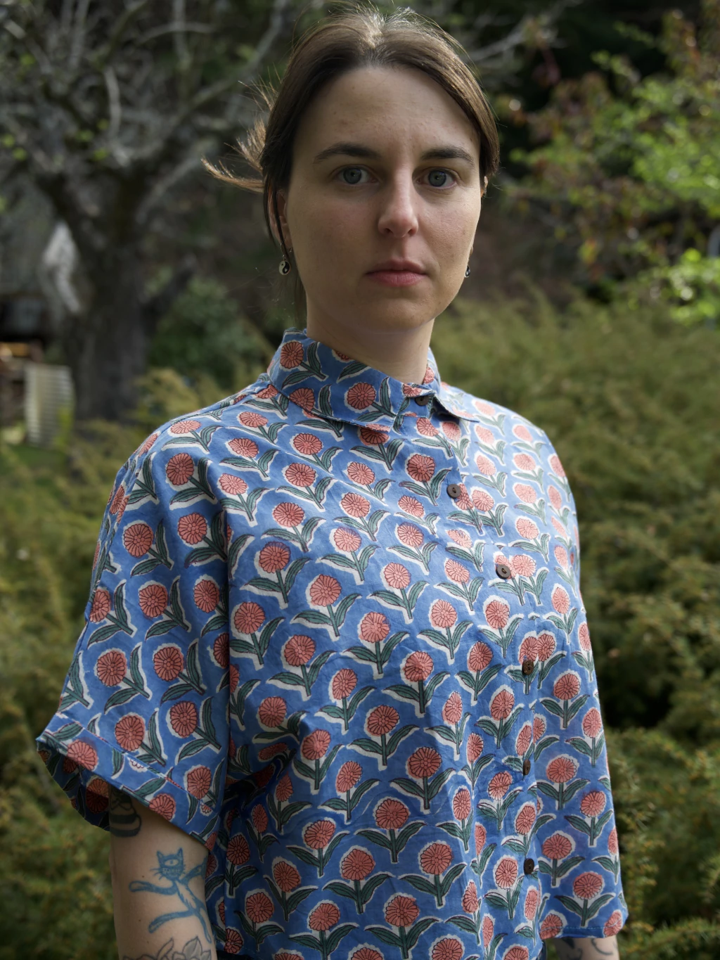 Camisa de algodon hecha estampada con la técnica de Blockprint.
